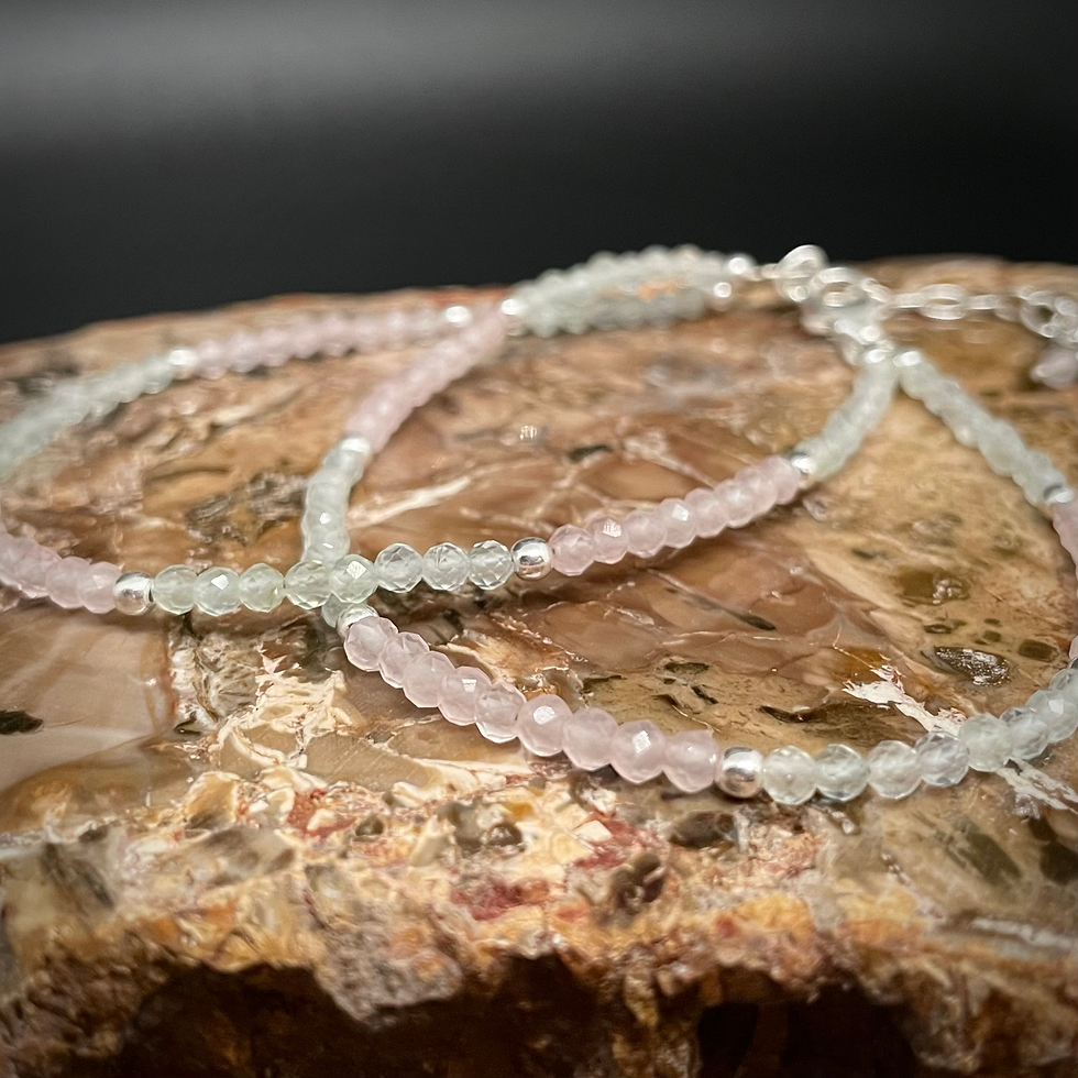 Rose Quartz & Prehnite Sterling Silver Bracelet